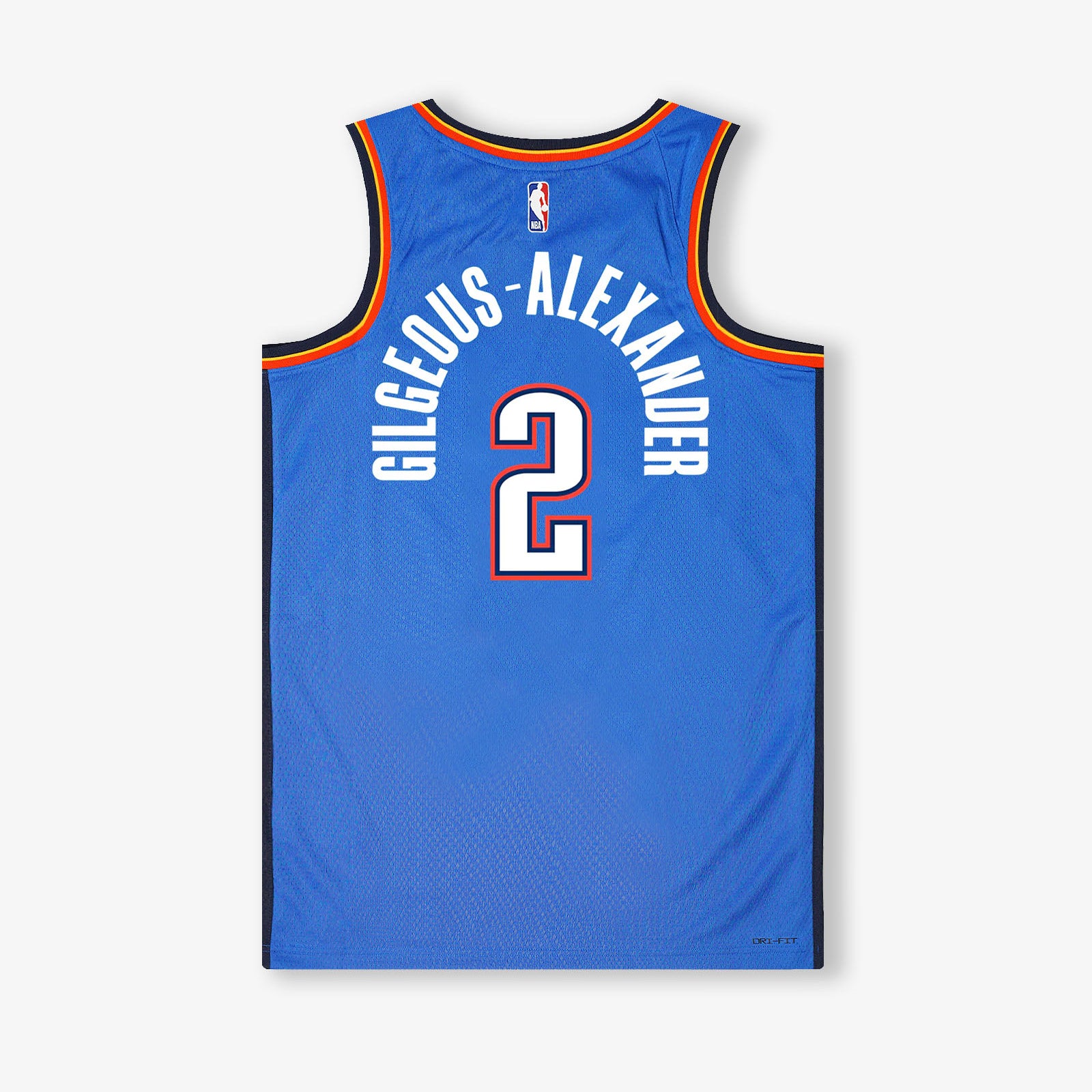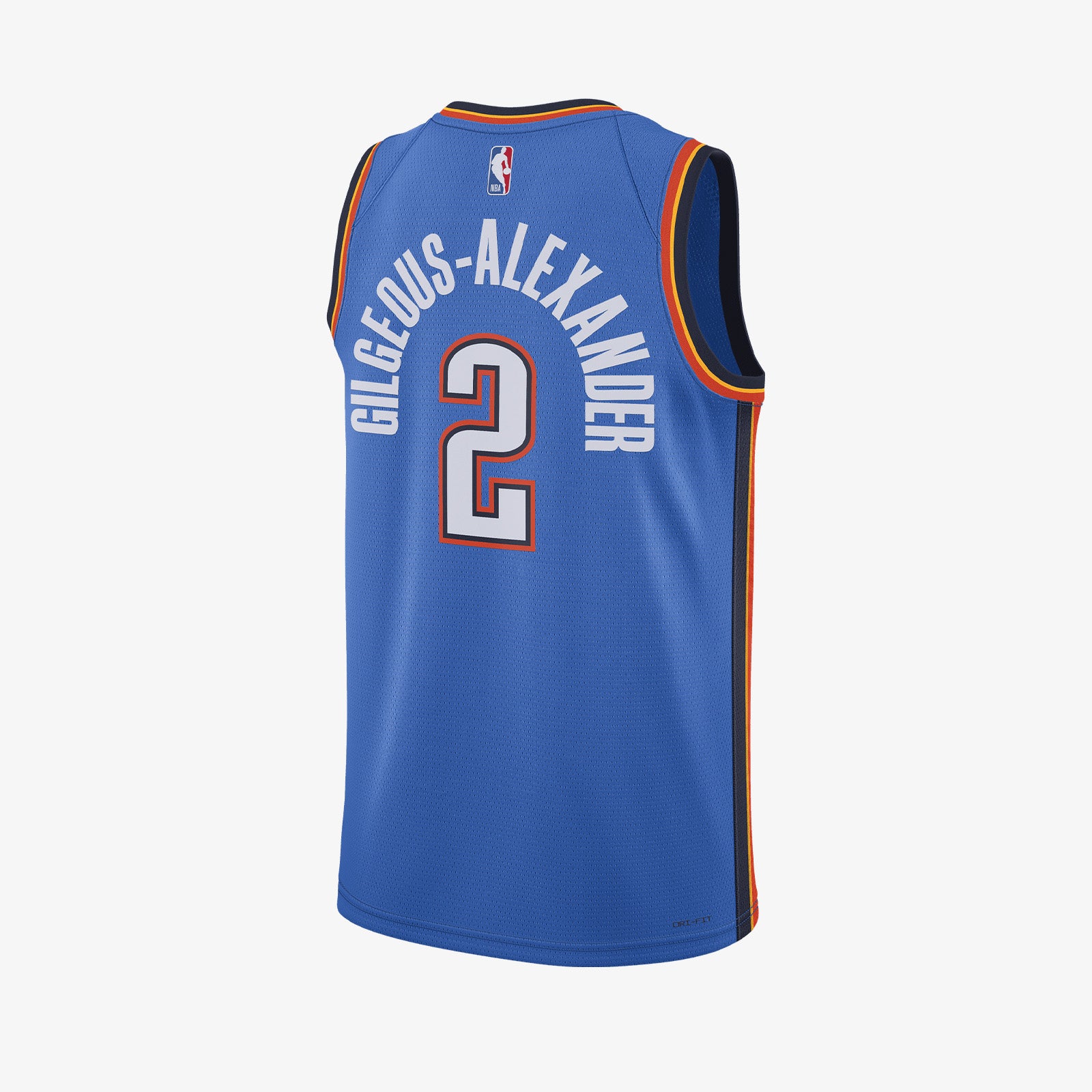 Shai Gilgeous-Alexander Oklahoma City Thunder 2022/23 Icon Edition Swingman Jersey is a double-knit mesh fabric and built-in sweat-wicking Dri-FIT technology keeping you dry and distraction-free. The straight hem will also provide a comfortable and relaxed fit for every fan.