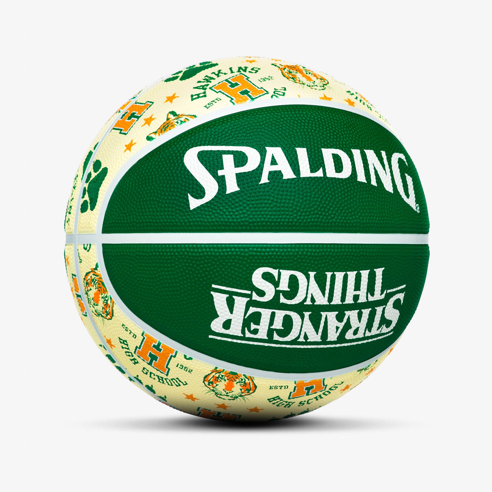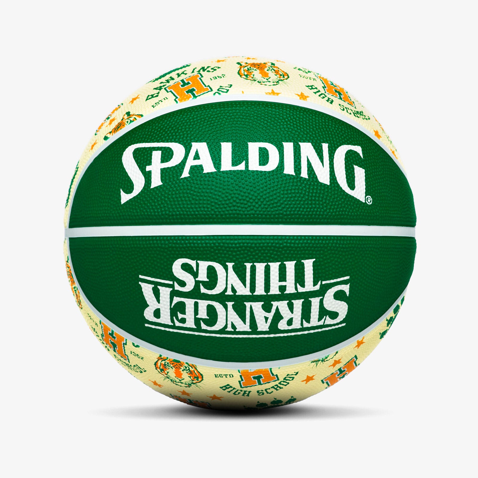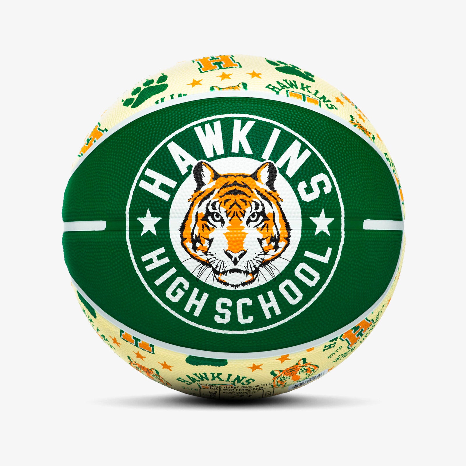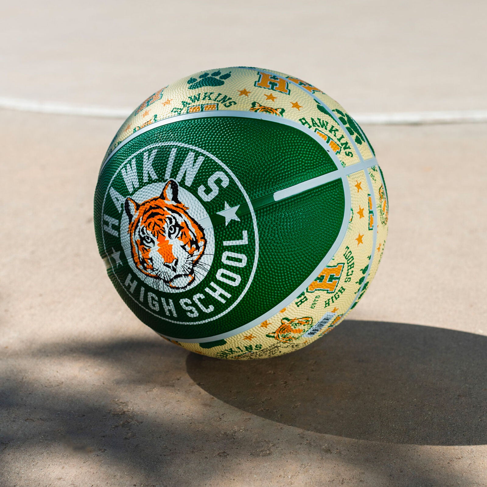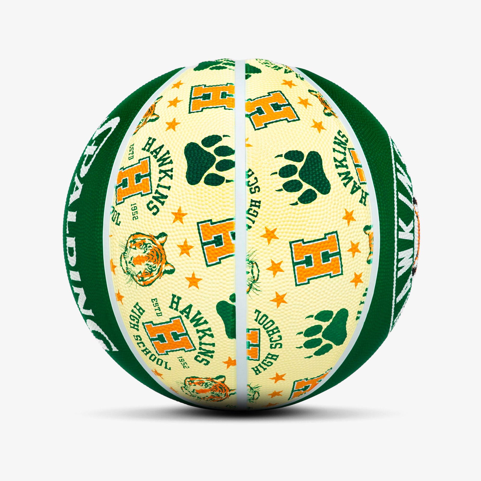 Lace-up and call next, with the Spalding® x Stranger Things Hawkins Basketball. Whether you're on the court, cheerleading on the sidelines, or a band nerd in the stands, show your Hawkins pride with this ball. Not one to blend in, it comes dressed in eye-popping Hawkins High colours and patterns, so you can stand out above the rest and show your Tiger Pride. Equipped with an all-surface cover to handle weeks of driveway drills or pick-up at the park this ball ships inflated and game ready out of the custom Spalding x Stranger Things 4 display packer it comes inside, so you can start hooping in no time.