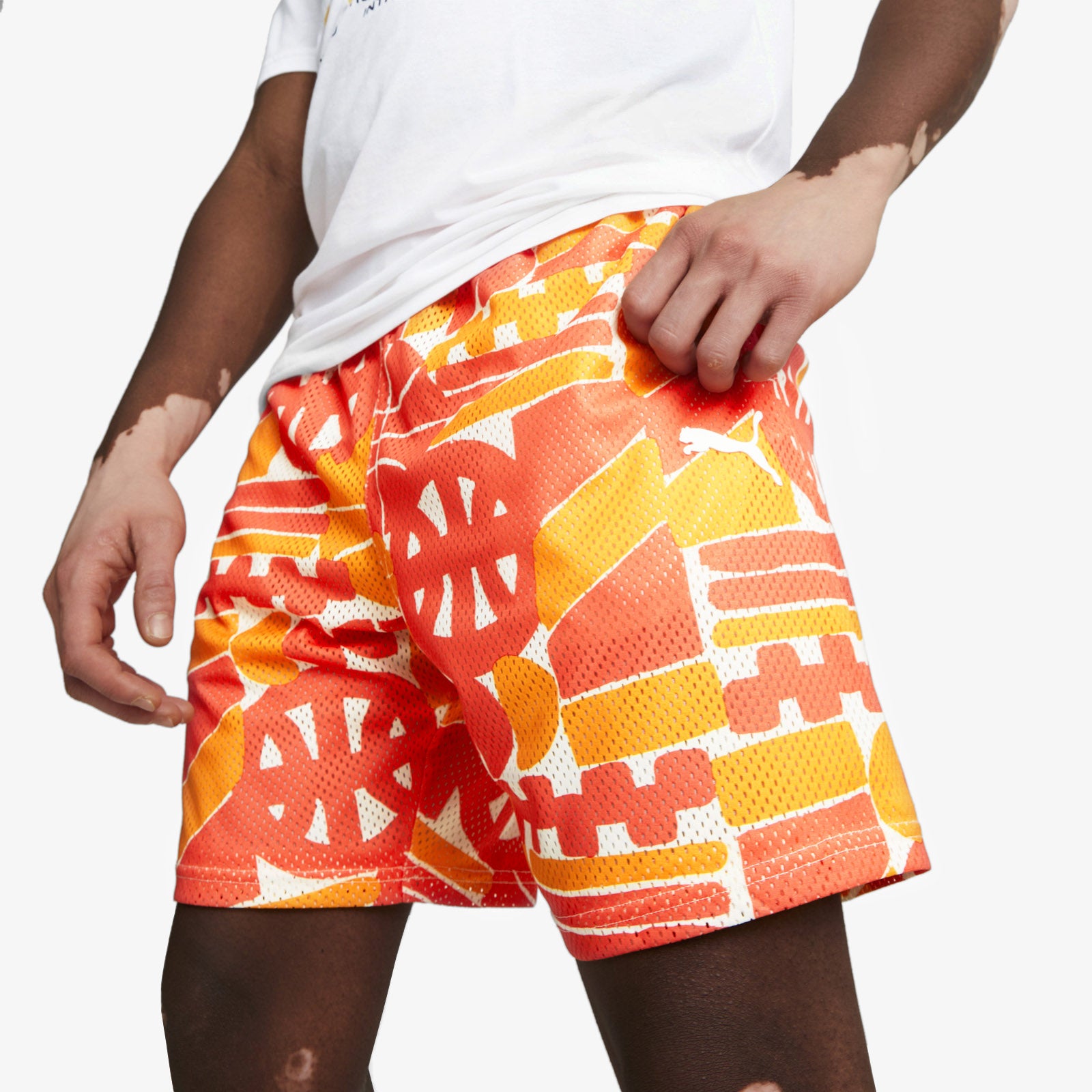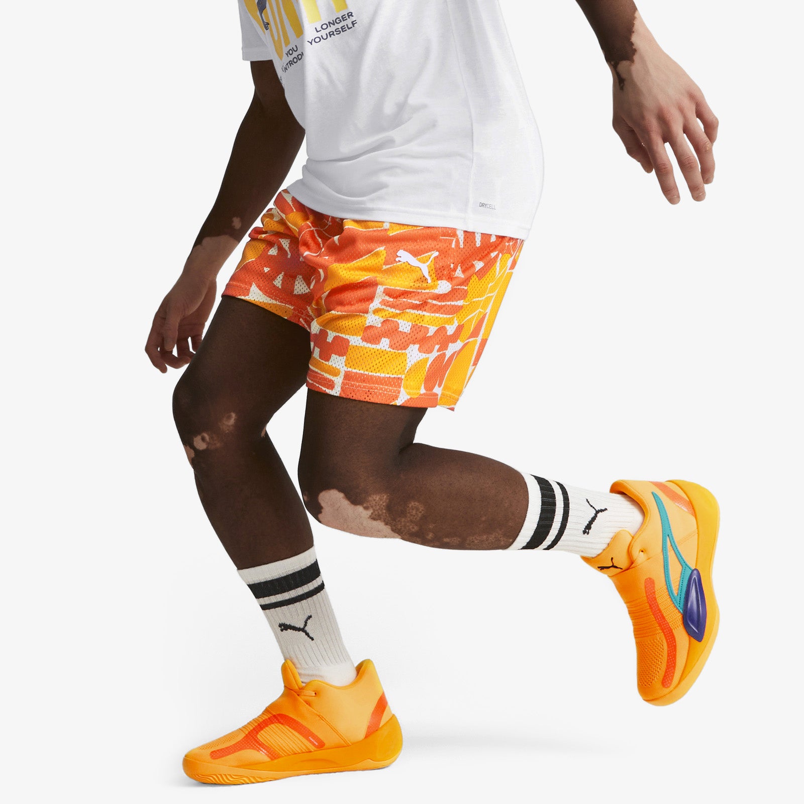 Say it loud with a stylised Puma print in citrus. Perfectly pairs with the latest TRC Blaze Court collection. Shorts come in elasticated waist for a comfortable fit, and moisture-wicking technology. You'll be hoopin' like the pros and looking fine while you're at it.