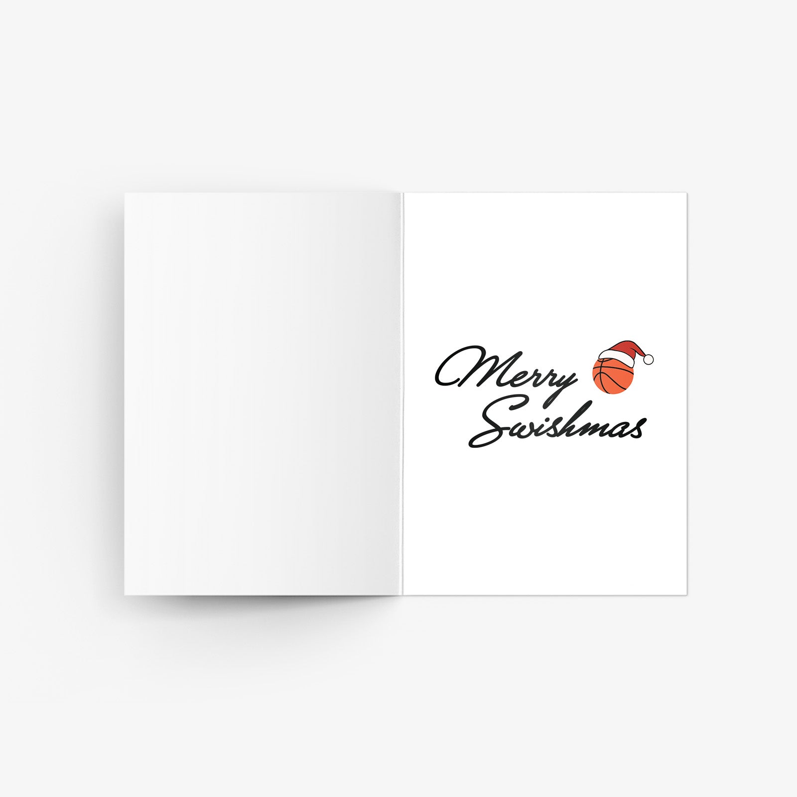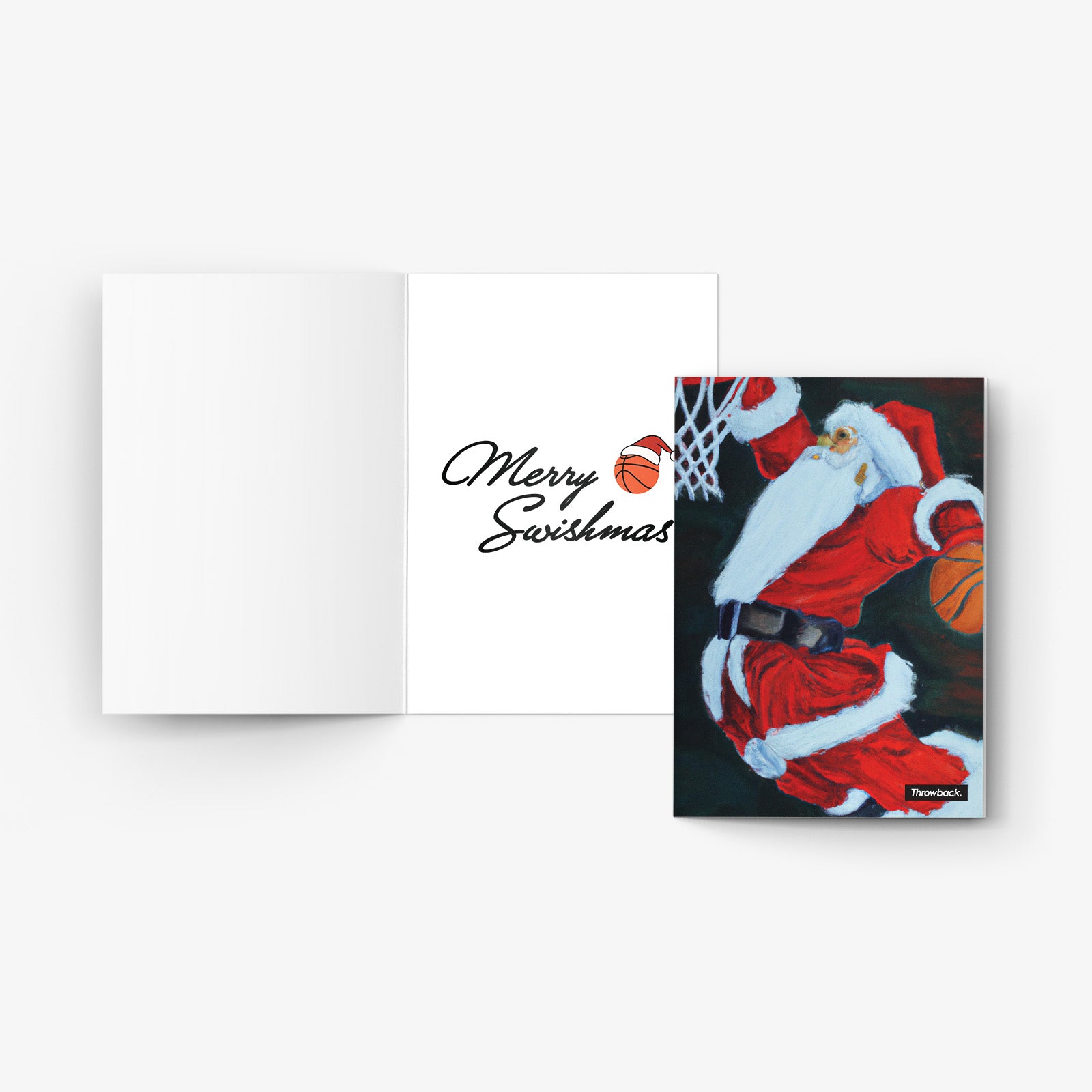 Throwback Slam Dunk Santa Greeting Card with "Happy Swishmas" on the inside.