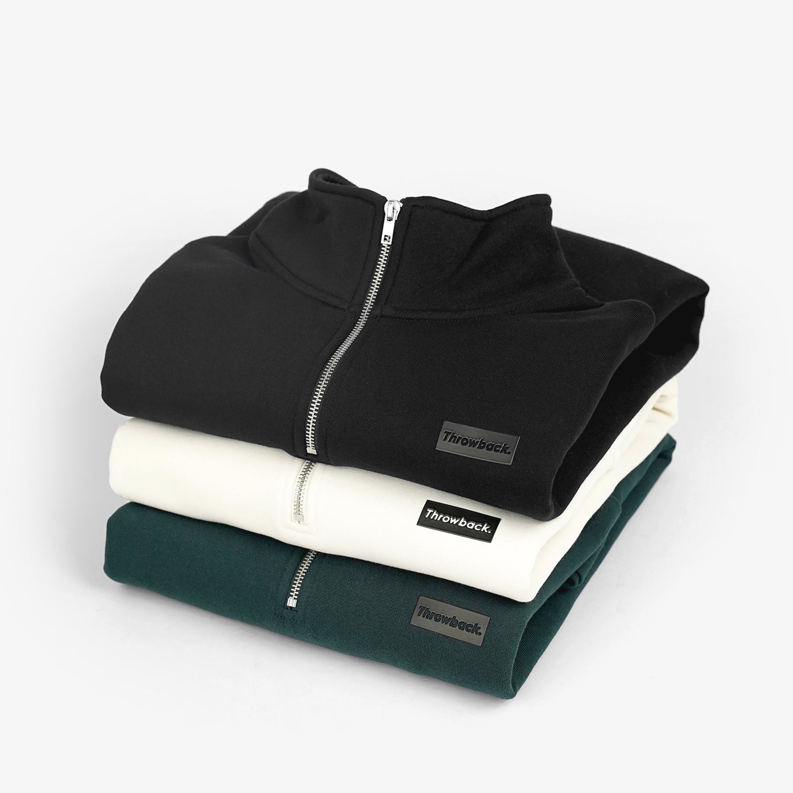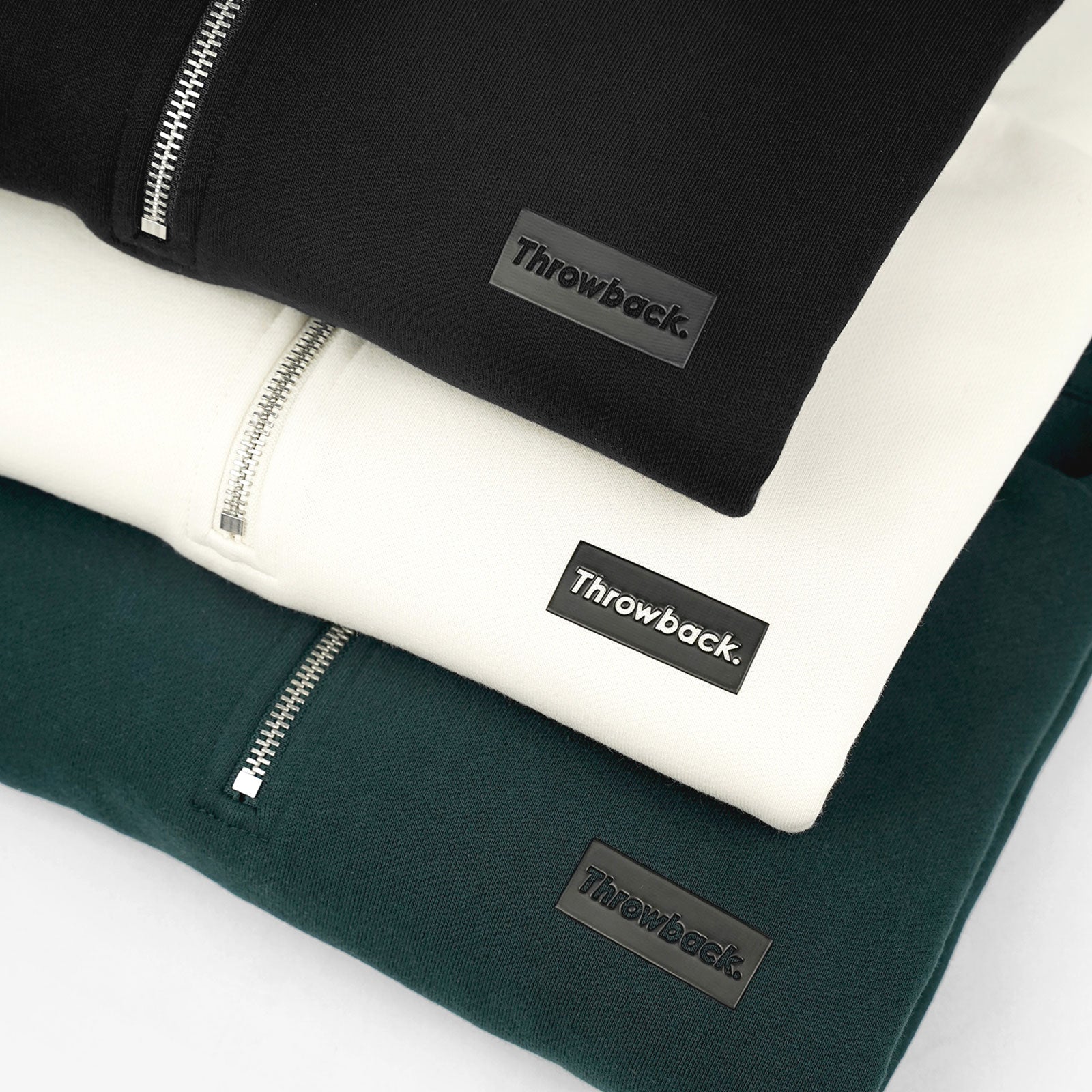 Throwback's embossed wordmark quarter zip sweatshirt is effortless and versatile. Being endlessly combinable, they are the perfect basic for any occasion. Premium comfort brought to life through Throwback's Icon 2.0 collection.