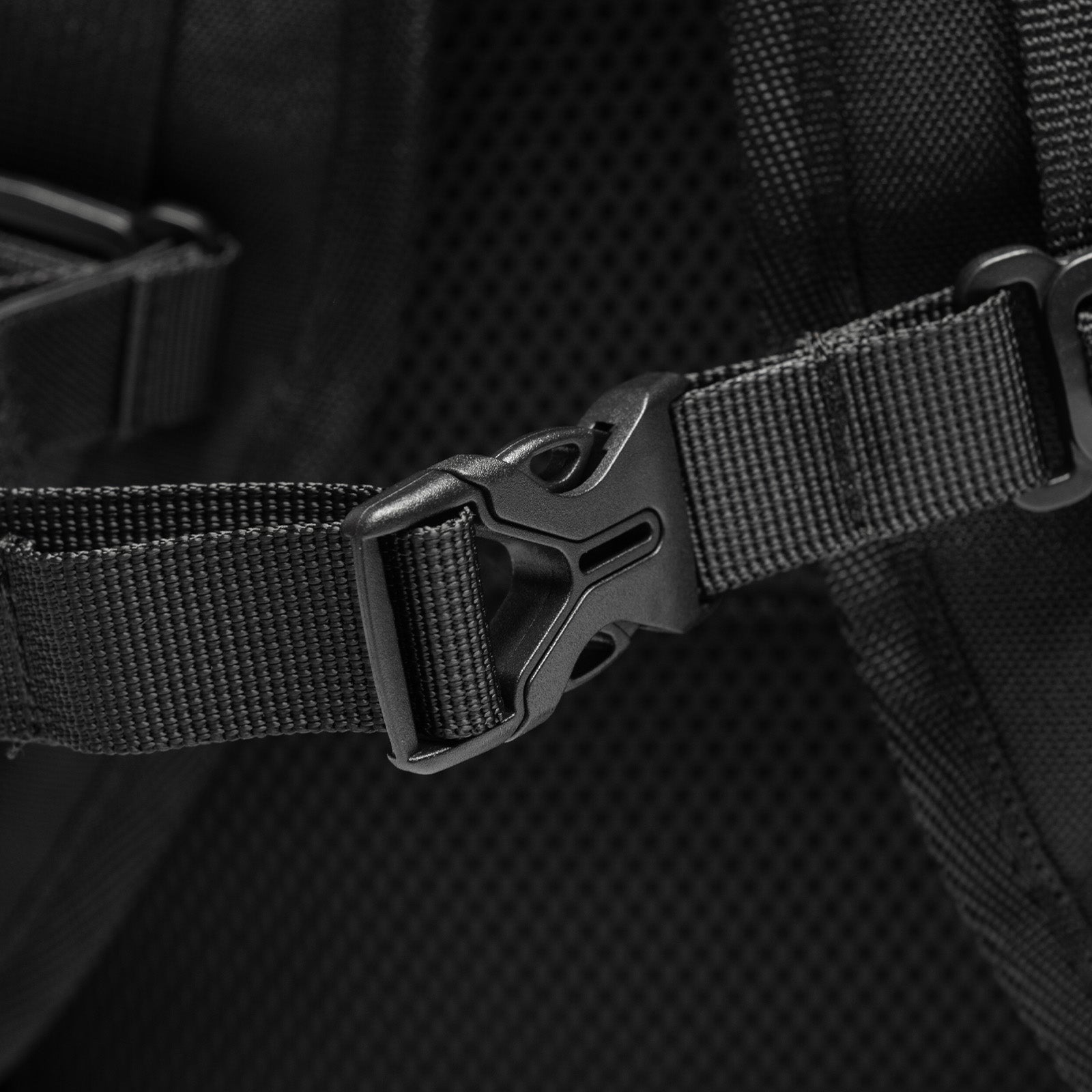 - Stabilizing chest strap distributes backpack weight for extended wear comfort