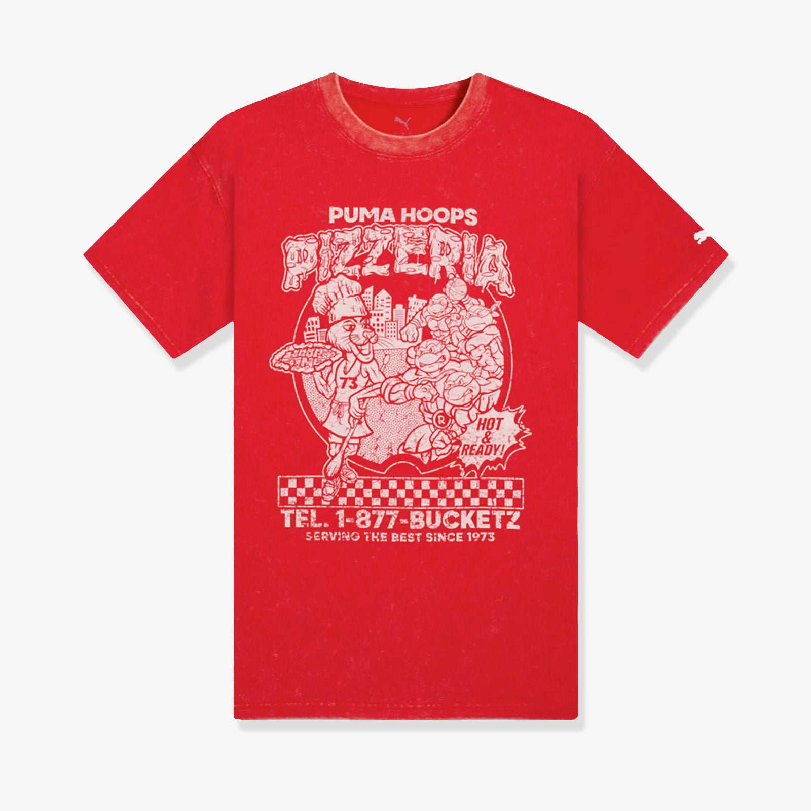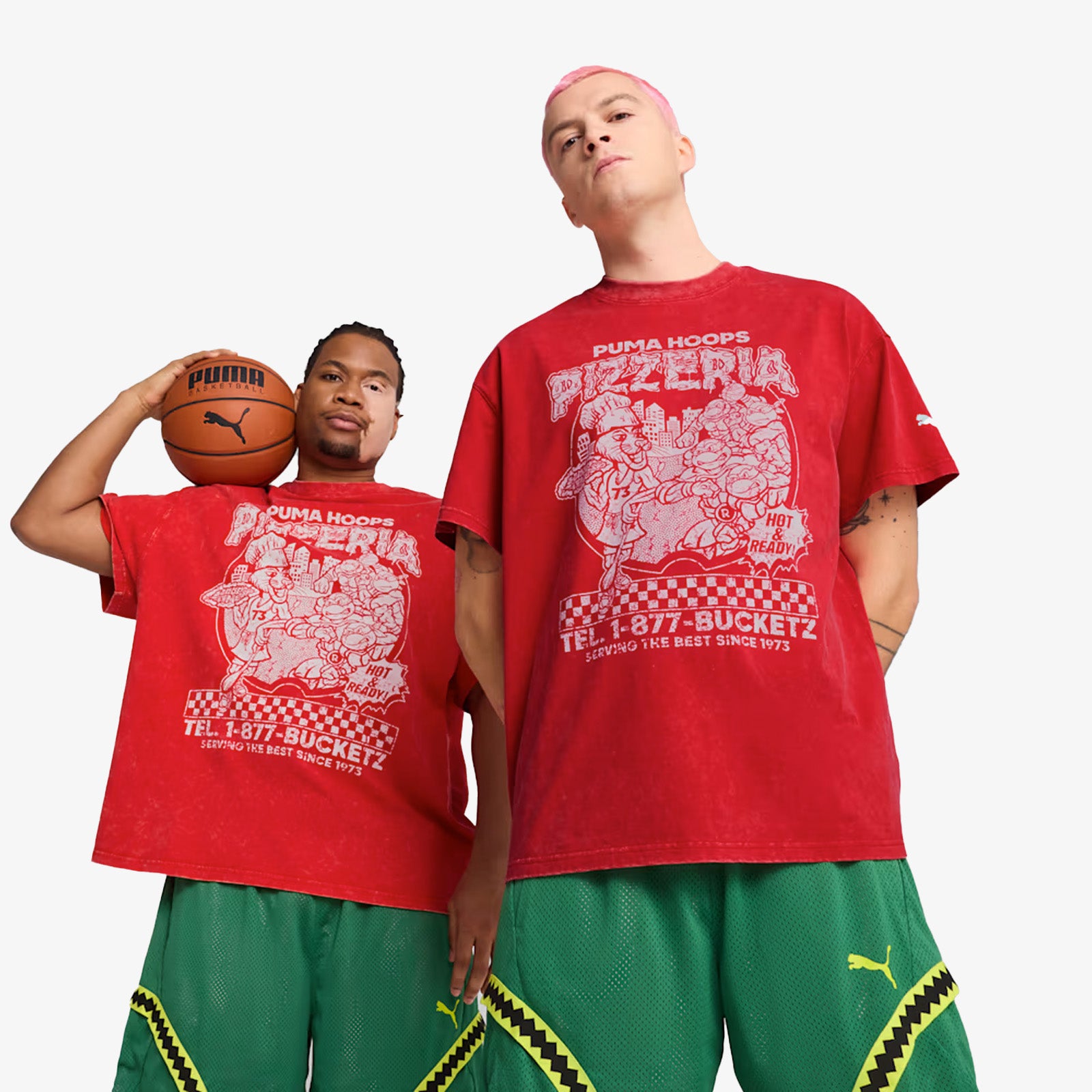 Get ready to shred the court and the streets with the PUMA Melo TMNT T-Shirt. Inspired by the iconic Teenage Mutant Ninja Turtles, this relaxed-fit T-shirt combines the heroic spirit with PUMA Hoops’ unmistakable flair.