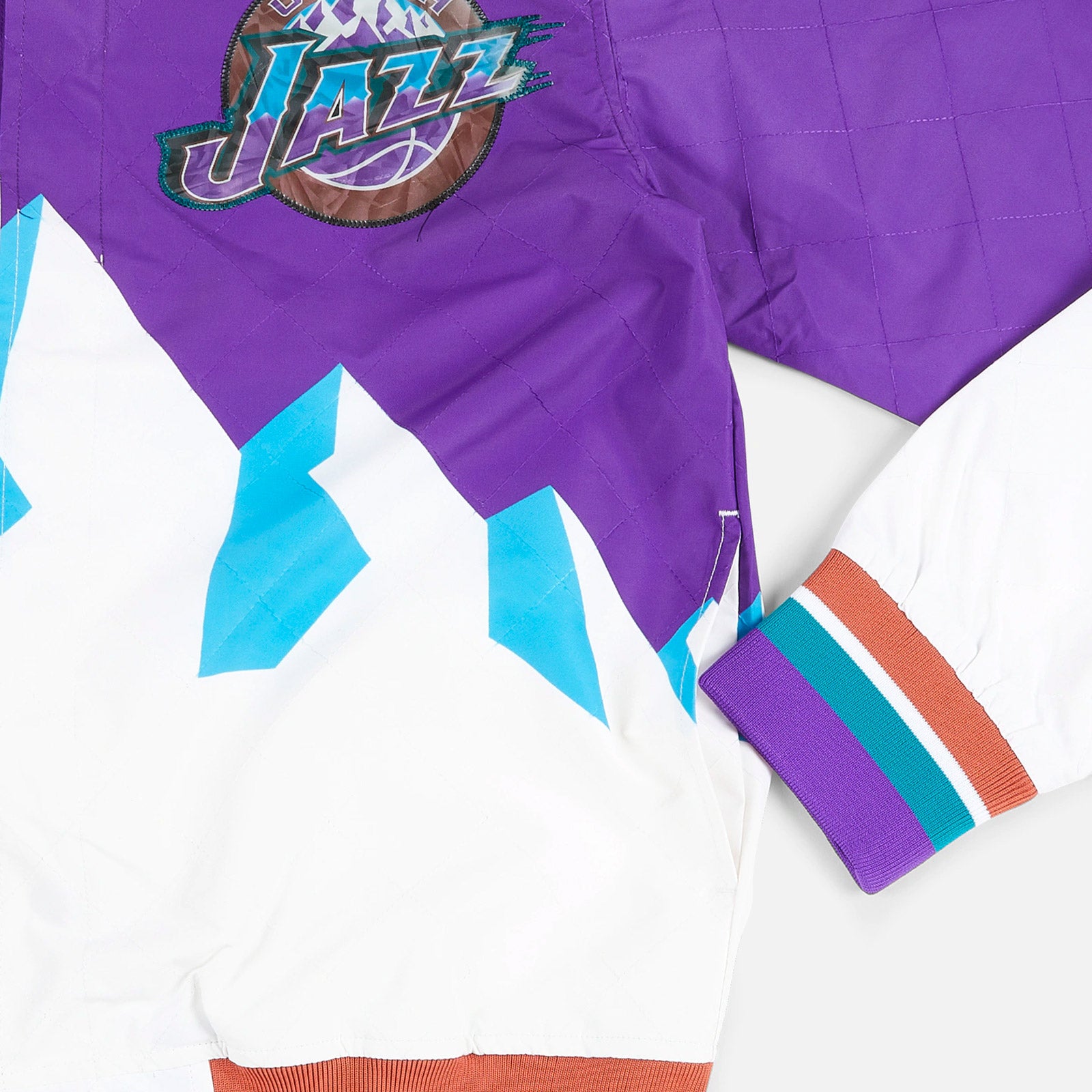 Styled from the warm up jackets worn by Utah legends John Stockton and Karl Malone. As seen during the season they made the NBA Finals and were inducted into the NBA's Top 50 greatest players all time. As part of the NBA75 team, the jacket has been given a diamond finish to commemorate the NBA's 75th anniversary.