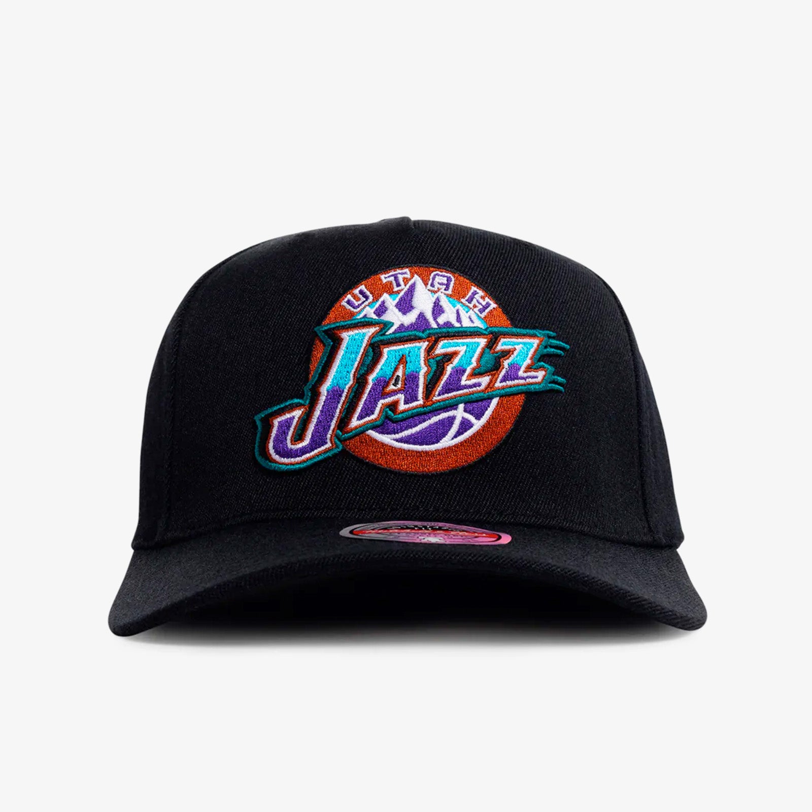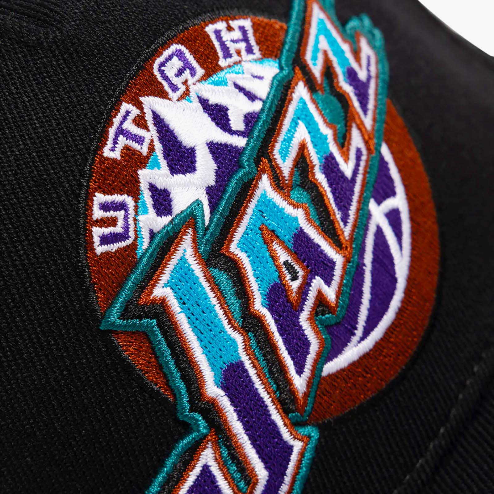 The essential Mitchell & Ness NBA logo snapback. The Classic Red inner band allows for a more comfortable, and universal fit. This all-black custom jacquard is finished out with a stitched red line.