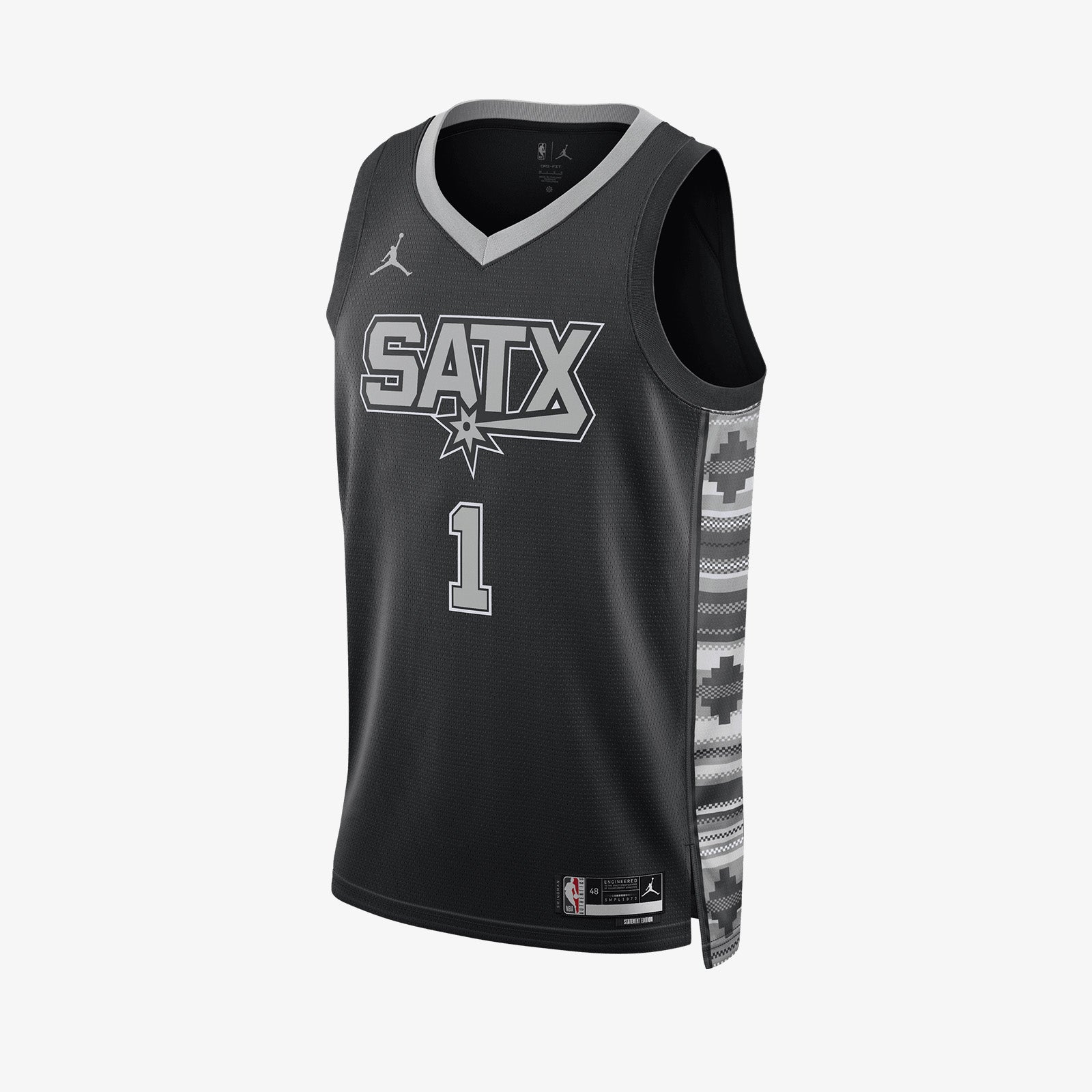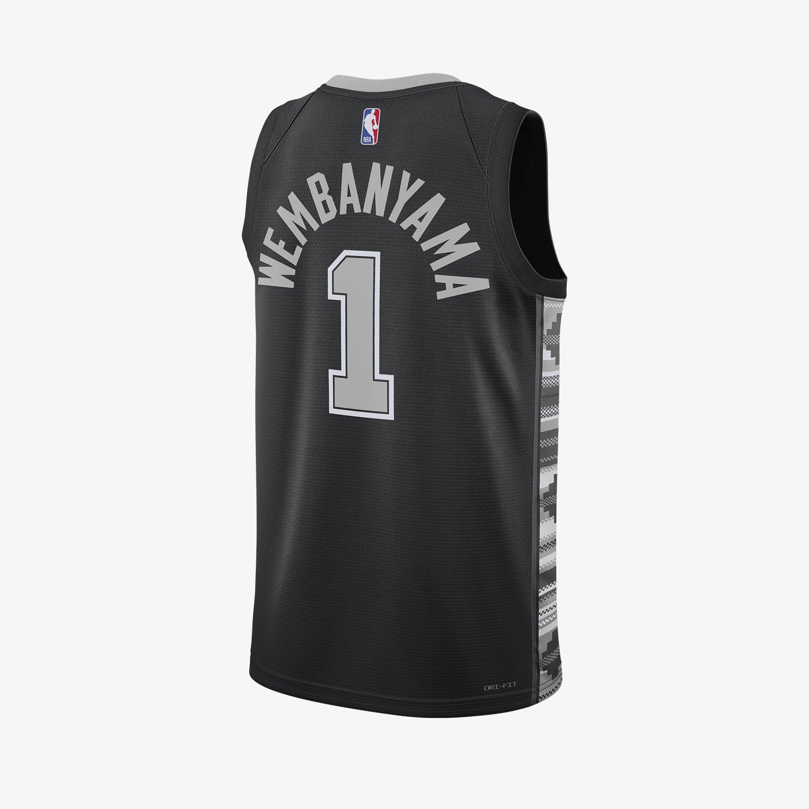 Victor Wembanyama San Antonio Spurs Statement Edition Swingman Jersey is a double-knit mesh fabric and built-in sweat-wicking Dri-FIT technology keeping you dry and distraction-free. The straight hem will also provide a comfortable and relaxed fit for every fan.