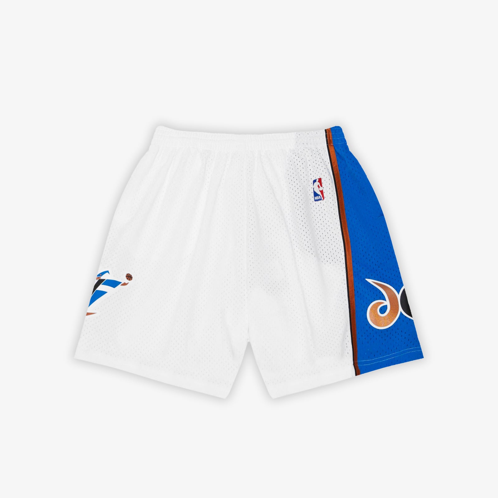 Home white swingman shorts for the newly rebranded Washington Wizards. Notable stars from the team include Rod Strickland and reunited 'Fab 5' teammates Chris Webber and Juwan Howard.