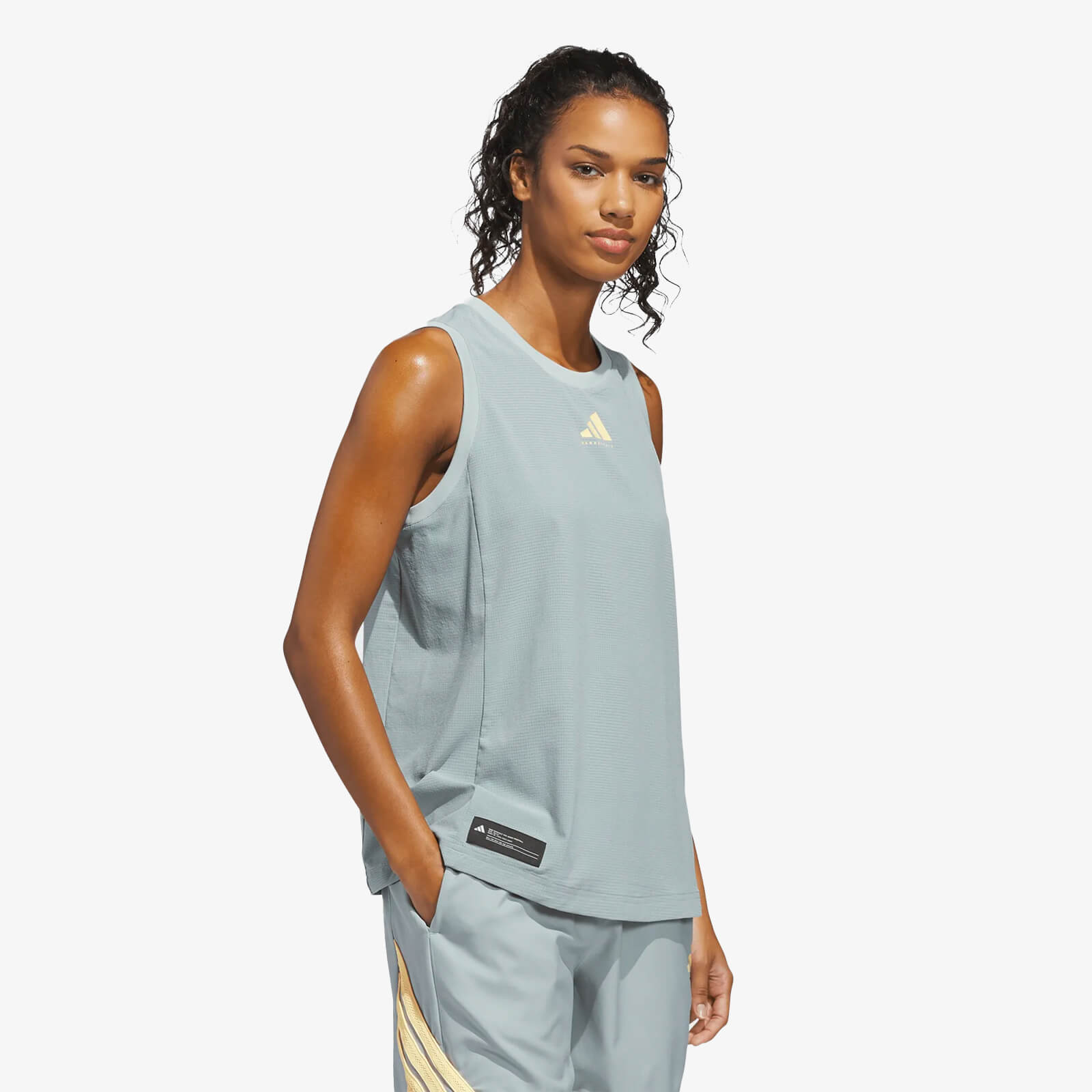 Drive to the hoop in this woven tank top from adidas Basketball. It features a round neck and wide arm holes to help give you a full range of motion on all your jumpers. The loose fit means you can flow up and down the court without distractions. CLIMACOOL wicks and disperses sweat for cool, dry and distraction-free performance. CLIMACOOL helps you manage sweat with materials that wick and manage sweat quickly. Its fast-dry fibres give you a fresh-skin feel. This product is made with 100% recycled materials. By reusing materials that have already been created, we help to reduce waste and our reliance on finite resources and reduce the footprint of the products we make.