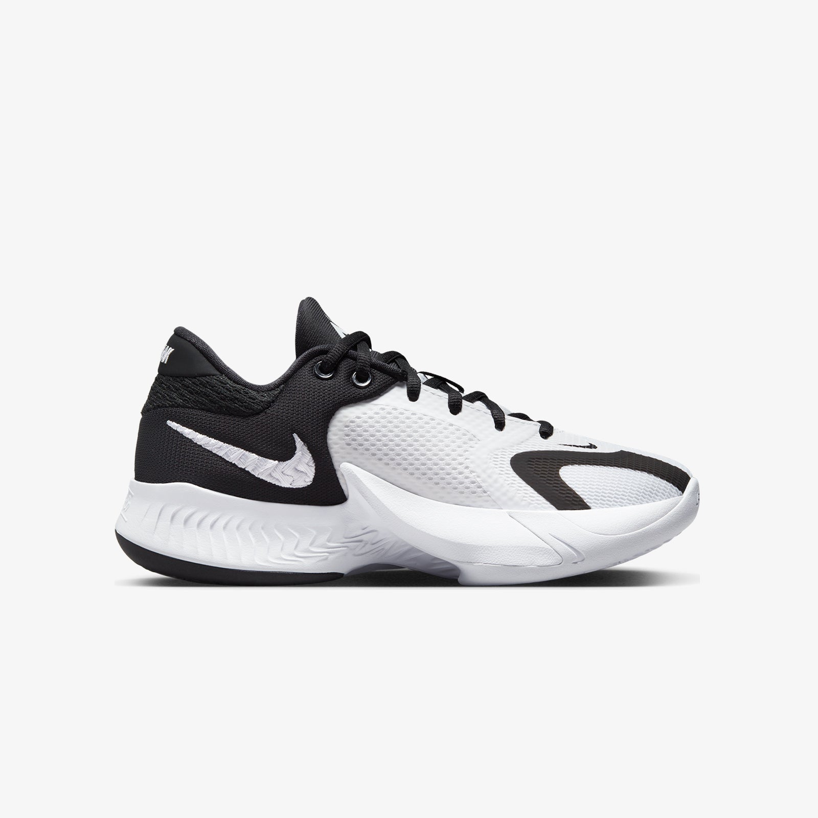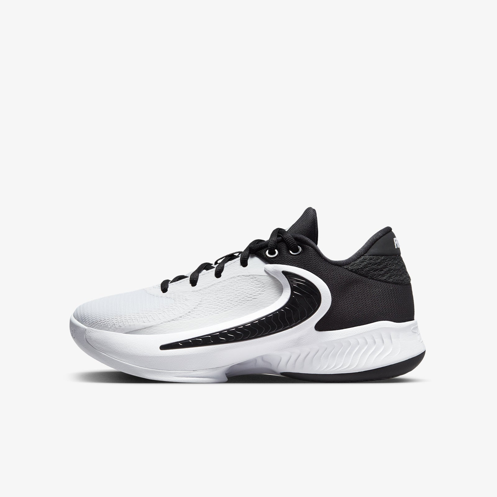 Grade School version of Giannis' 4th signature sneaker. A classic monochrome silhouette on a white base. A versatile colourway ideal for school and the playground.